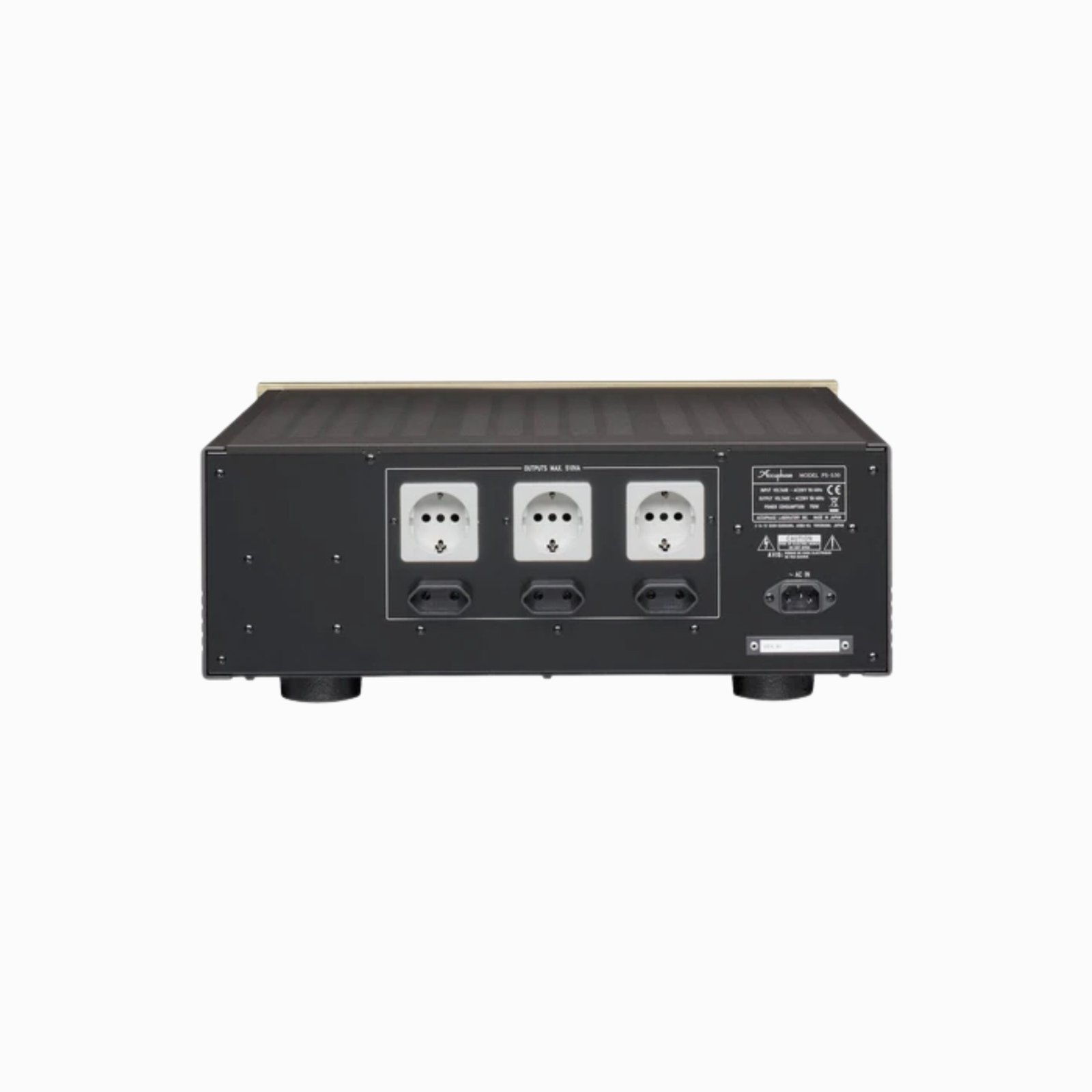 Every audio component draws all of its energy from the power supply, which in turn is connected to the AC power grid. The Clean Power Supply components from Accuphase are products that remove noise and impurities from the AC power line through a groundbreaking new approach, resulting in a drastic improvement of the sound and picture quality of connected audio and video equipment. Without relying on an oscillator, the reference waveform is created with further improved accuracy and is linked to the power section by a balanced connection to ensure incredibly low distortion in the output waveform. The PS-530 can deliver as much as 510 VA, covering the requirements of most standard audio components.