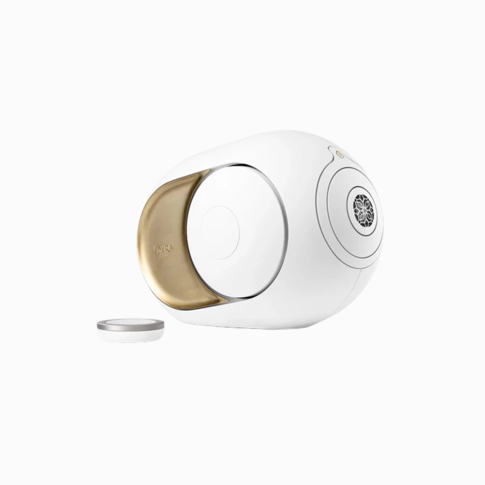 • Drivers & build: Grade-1 Titanium tweeter, aluminium medium driver, aluminium bass drivers. Body finish: white (RAL 9016) with “Moon Gold” gilded side-plates (special Opéra de Paris edition). devialet.com+1