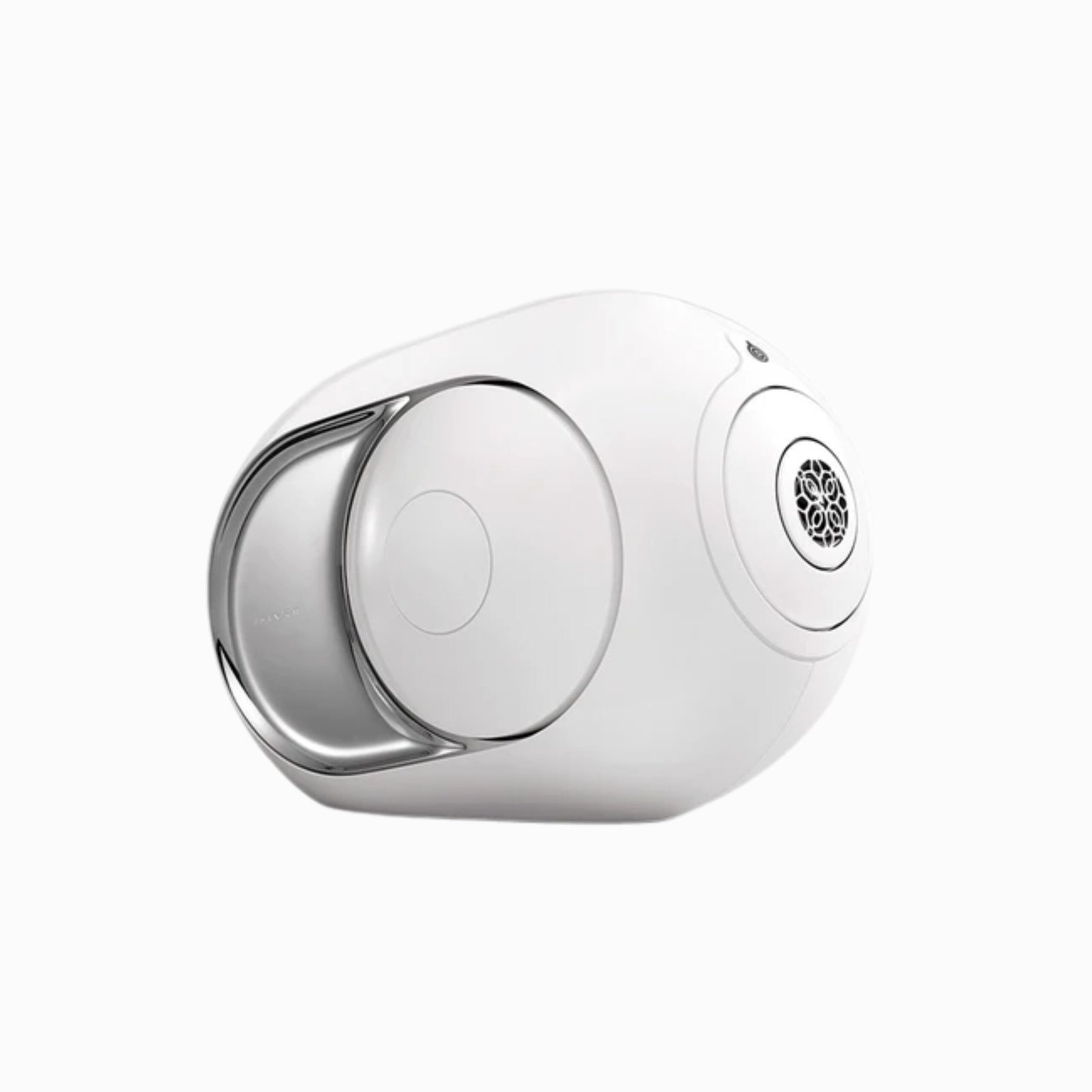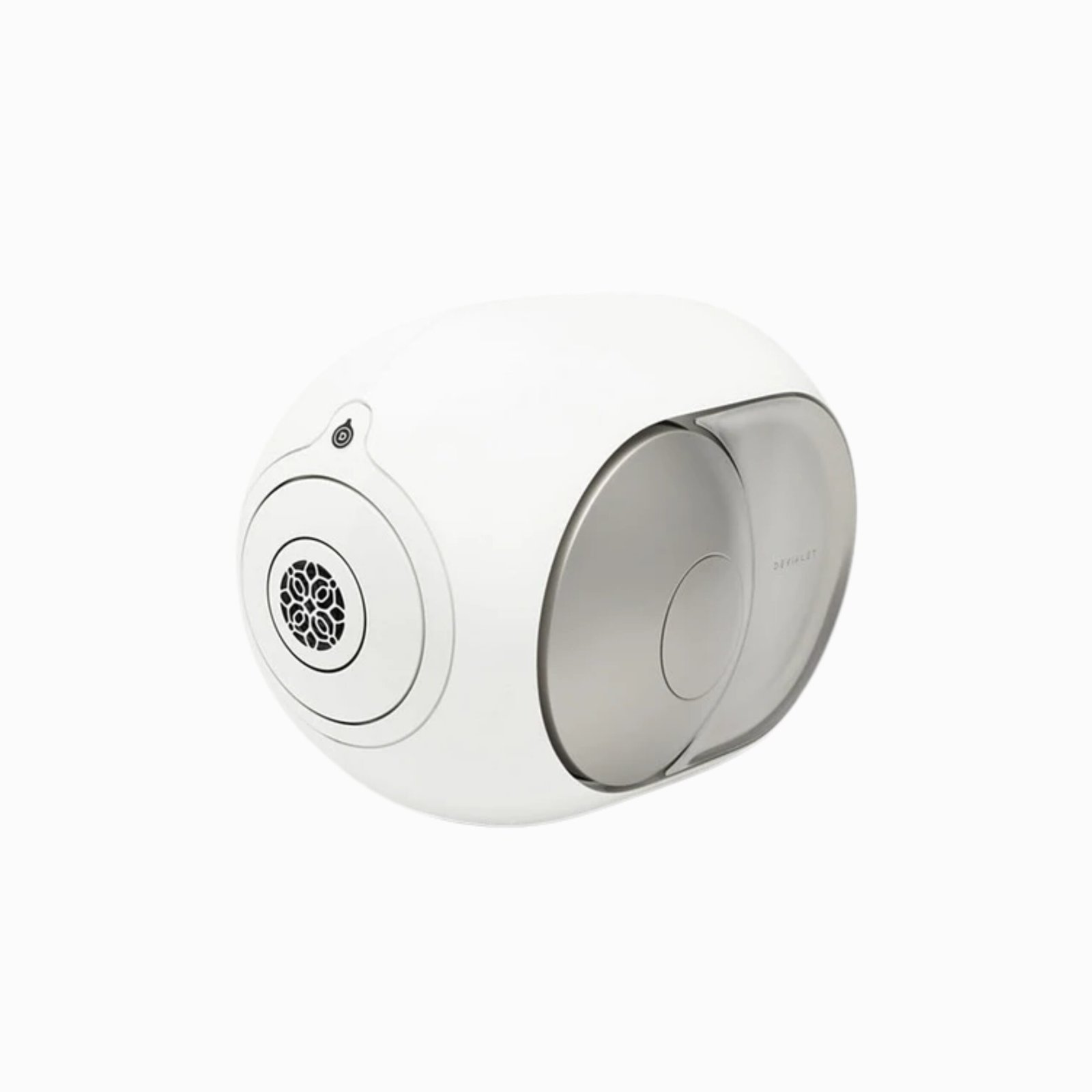 Finish: White body (RAL 9016) with sand-blasted stainless steel sides and silver-dome drivers. Devialet