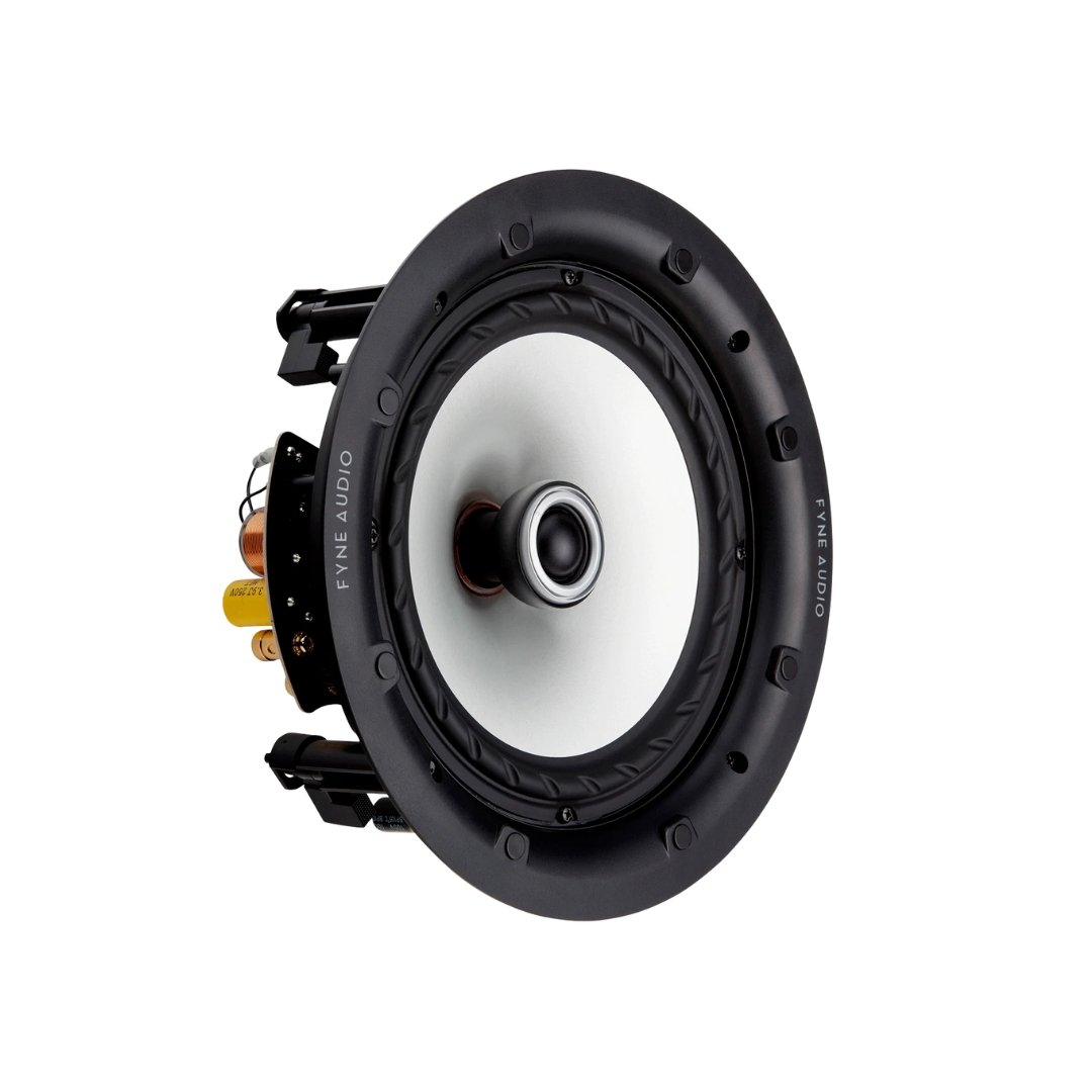The potent 200mm (8”) multi-fibre bass/midrange driver and 25mm soft dome polyester tweeter, the FA302iC is a home installation powerhouse. High power handling, bass down to below 40Hz, and an adjustable tweeter pod to direct the sound give this model audiophile-quality performance. Derived from Fyne’s larger F300 series models, the FA302iC features the FyneFlute roll surround for improved bass detail and a high specification crossover tuned to get the very best from in-ceiling or in-wall position. Easy-to-fit clamps, spring cable terminals, and a cut-out template make for easy custom install, and the round low low-profile magnetic grille (square grille available as an optional extra) sits almost flush to the surface. The grille can be painted, enabling you to blend in or contrast with a wide variety of décor and room colours.