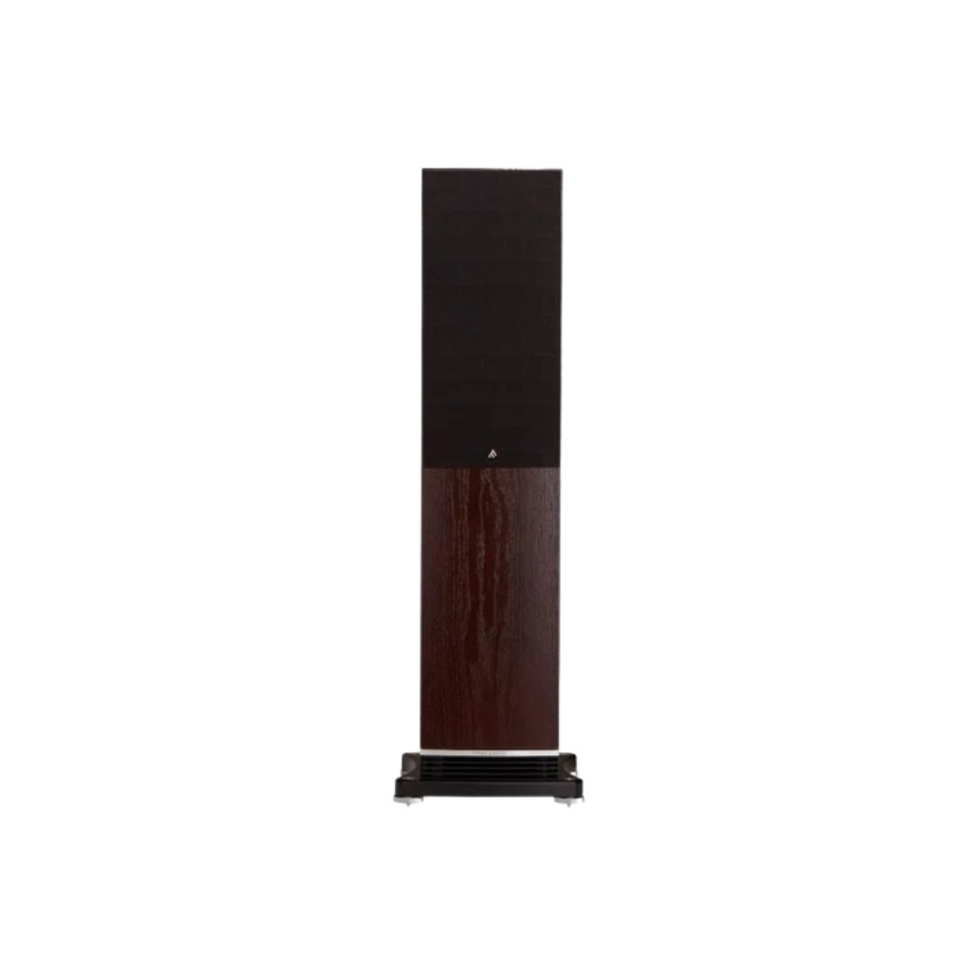 The F502 floorstanding speaker delivers the series’ signature clarity and articulation along with visceral bass. The system will suit larger listening environments but is capable of revealing a huge dynamic range even when played at low volumes in smaller rooms. Isotropic energy radiation, with point source constant directivity, is provided by a 200mm (8″) proprietary IsoFlareTM driver for outstanding stereo imaging, even off-axis. A matched 200mm (8″) bass driver is also fitted to the 64-litre cabinet, ensuring a breath-taking Hi-Fi or home theatre experience. Ideal for medium to large-sized rooms, the F502 is supplied with a dedicated plinth incorporating our BassTraxTM Tractrix diffuser system, which integrates bass energy uniformly into the room. The luxuriously finished, contemporary styled cabinet is available in a choice of dark oak or black oak real wood veneer and piano gloss black or white. Enhancing its aesthetic appeal, it has a gently curved front and rear baffle, which additionally benefits the acoustic performance by reducing colouration effects.
