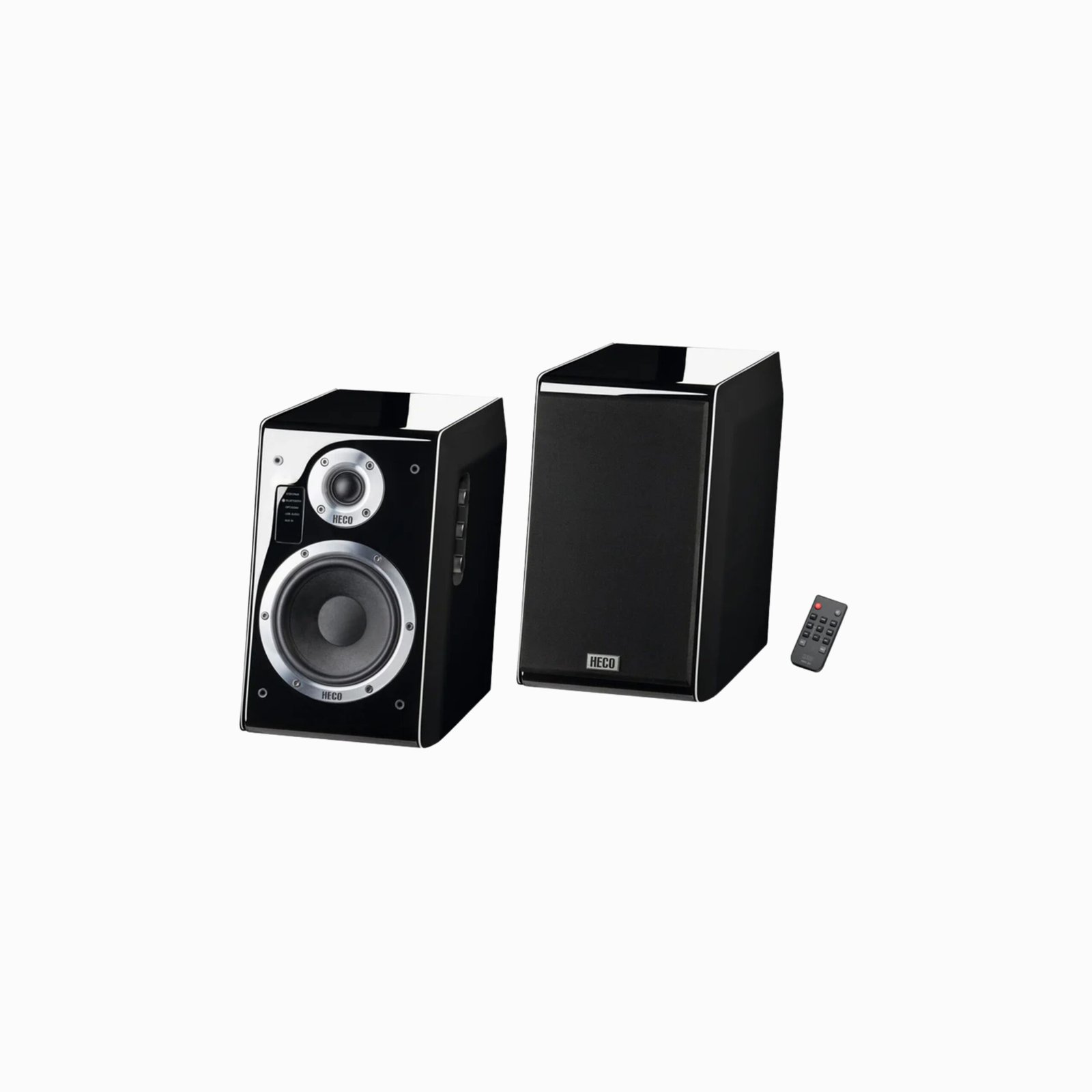Powered speakers with built-in amplification — no separate amplifier needed