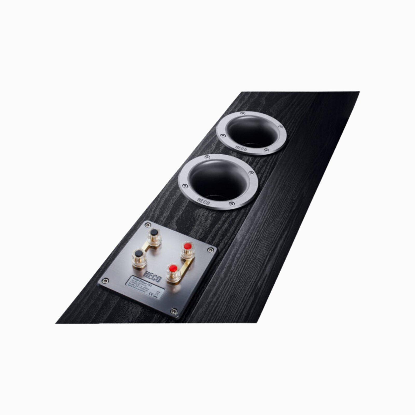 HECO Victa Prime 702 is the largest floorstanding speaker in the series, and it is equipped with three woofer chassis, two of which operate in a double bass configuration to ensure a powerful foundation for the bass range. The cones used for the 170 mm woofer and midrange drivers have been manufactured from HECO´s tried and tested long-fibre kraft paper. A 25 mm silk dome, which features ferrofluid cooling for improved power handling, is equipped with a short horn attachment for enhanced transition to the midrange. Lightly rounded sides, which have been meticulously manufactured from layers of glued and moulded MDF panels, provide the speaker with a modern appearance. The extremely low-resonance structure offers optimum conditions for the chassis and bass reflex coordination.