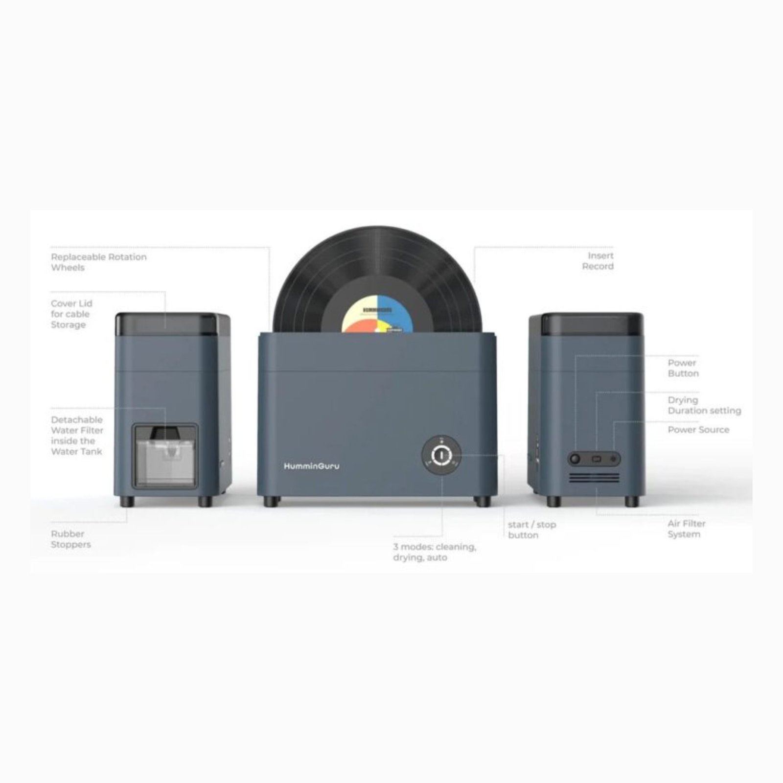 Ultrasonic cleaning is an approved process of using sound waves to create cavitation bubbles in a liquid bath of water that requires zero contact with the record during the cleaning process. HumminGuru applied a duo 40 kHz ultrasonic system. With 40 kHz, it is powerful to remove the contaminants and dust on your vinyl record without causing any damage.
