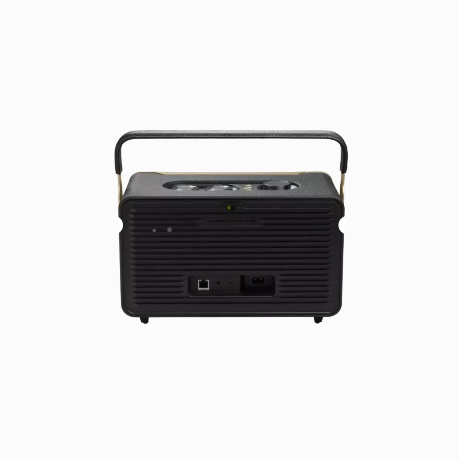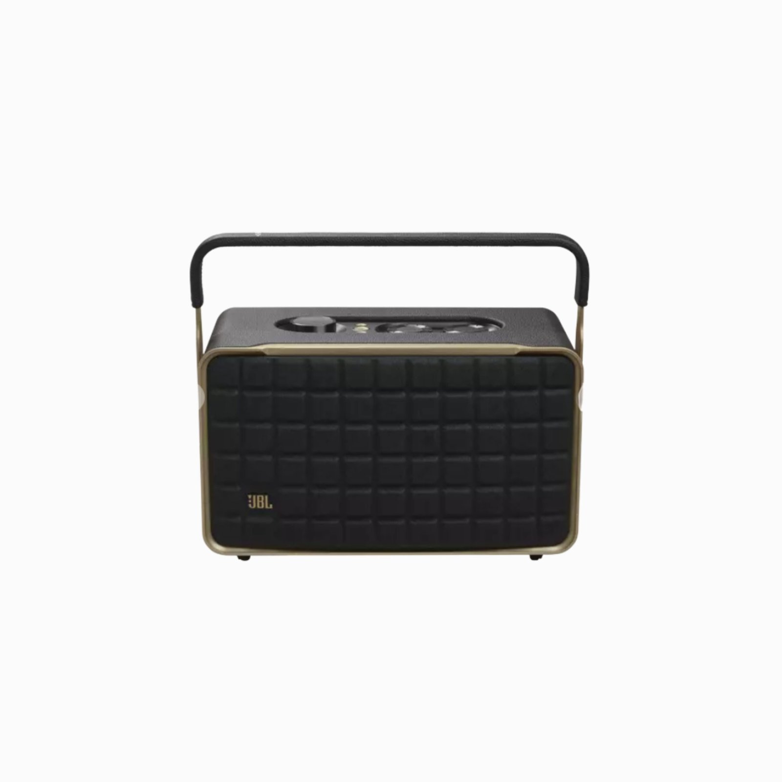 The JBL Authentics 300 delivers iconic style inspired by classic JBL retro designs, in a portable home speaker that looks great in any decor. It will easily fill any space, big or small, with superior JBL sound. And the speaker’s convenient cast-aluminum handle, custom leather-like enclosure, and reimagined Quadrex grille really show the attention we paid to each visual detail, right down to the special JBL signature pattern on the down-firing passive radiator.