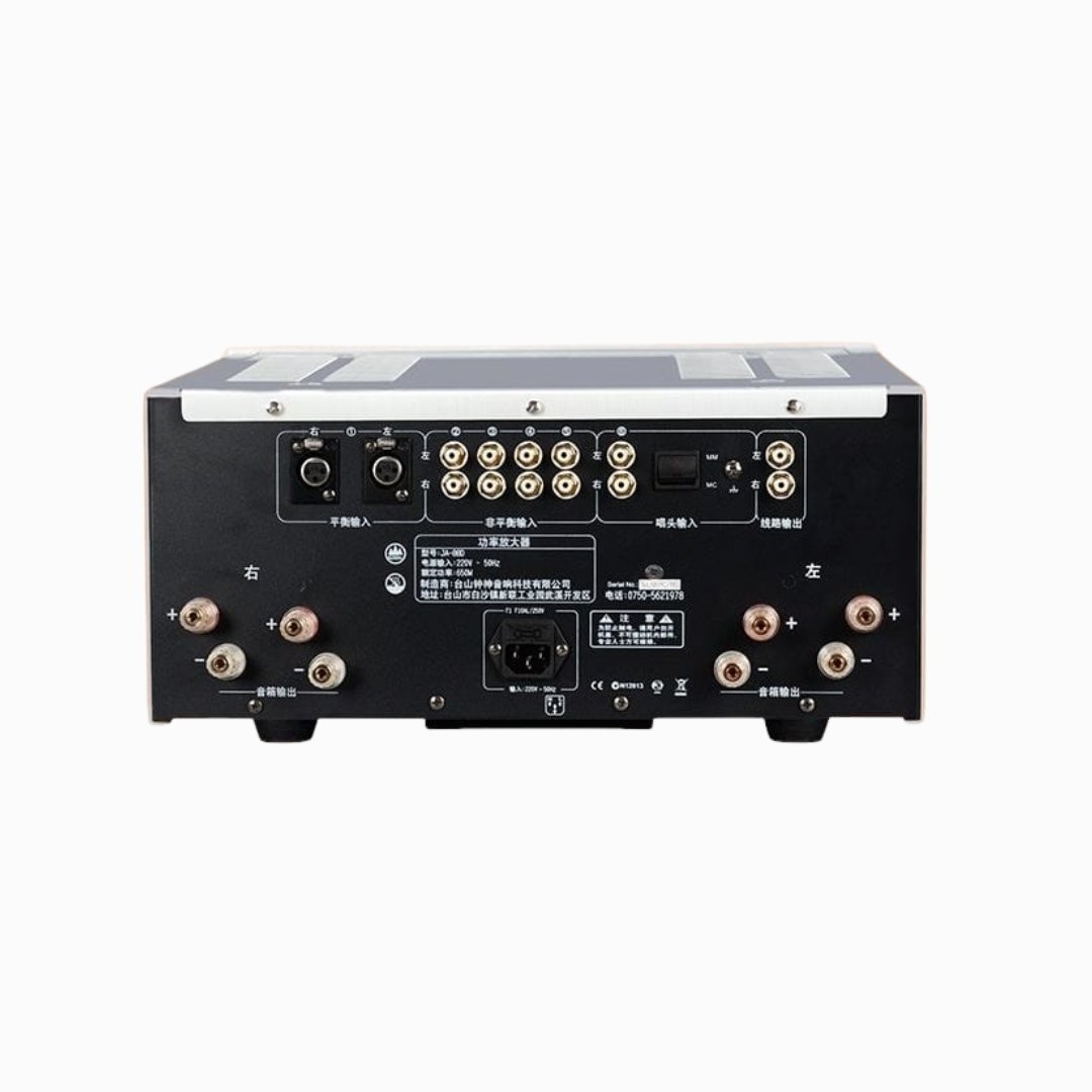 - It follows Jungsons’ flagship product, using the same core technology as JA-1/JA-99C, and almost all key components. Such as 680VA square transformer, advanced 240,000 microfarad filter capacitors (Japan), Toshiba power tube( 8 pairs ), Sanken push tube (Japan)