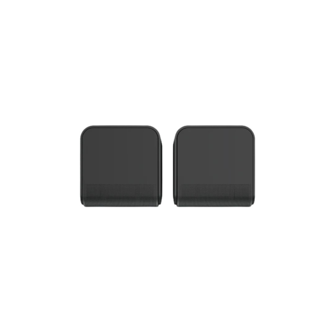 With a ¼-20 threaded insert on the back and power conveniently located on the bottom, Flexus Surrounds can be wall-mounted for maximum immersion or used on a flat surface.