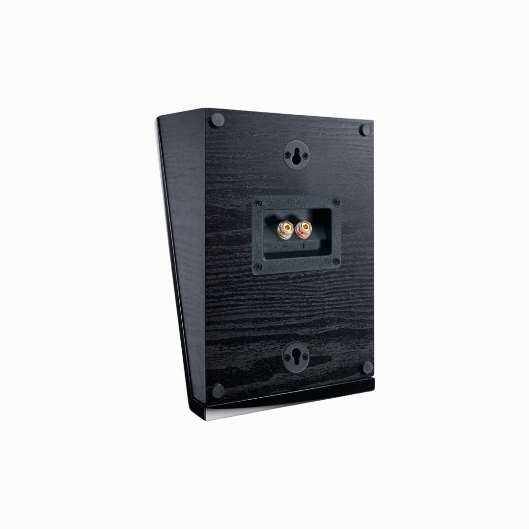 The solid housing is available in a black or white high-gloss finish and blends in perfectly with existing speakers or integrates harmoniously into a room when mounted on a wall. The crossover has been optimized in terms of amplitude and phase to fulfill the demanding Dolby Atmos specifications. A generously dimensioned terminal area with solid screw terminals ensures that even the highest quality speaker cables are securely accommodated with optimum contact.