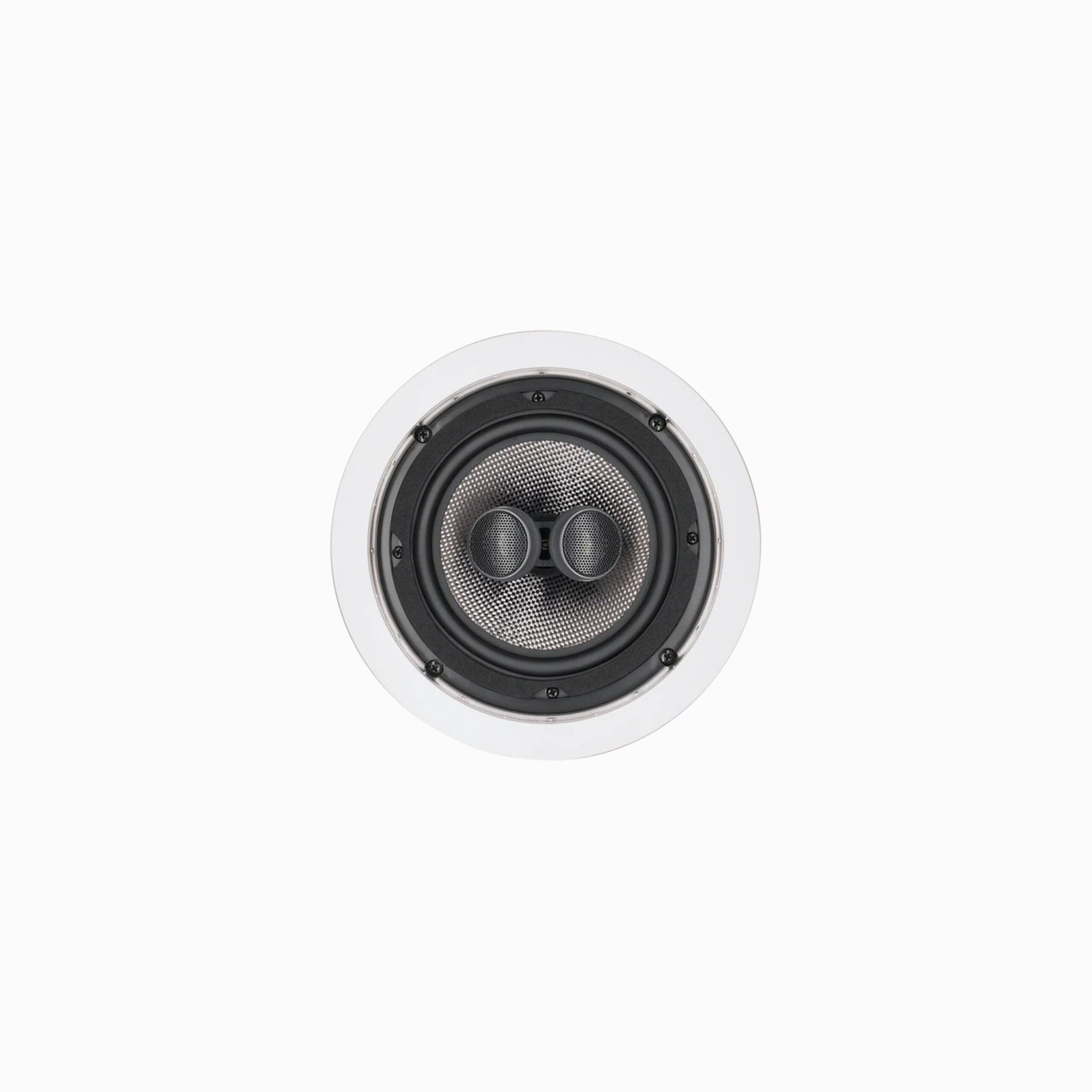 2-way recessed ceiling speaker design for discreet audio installation in ceilings.