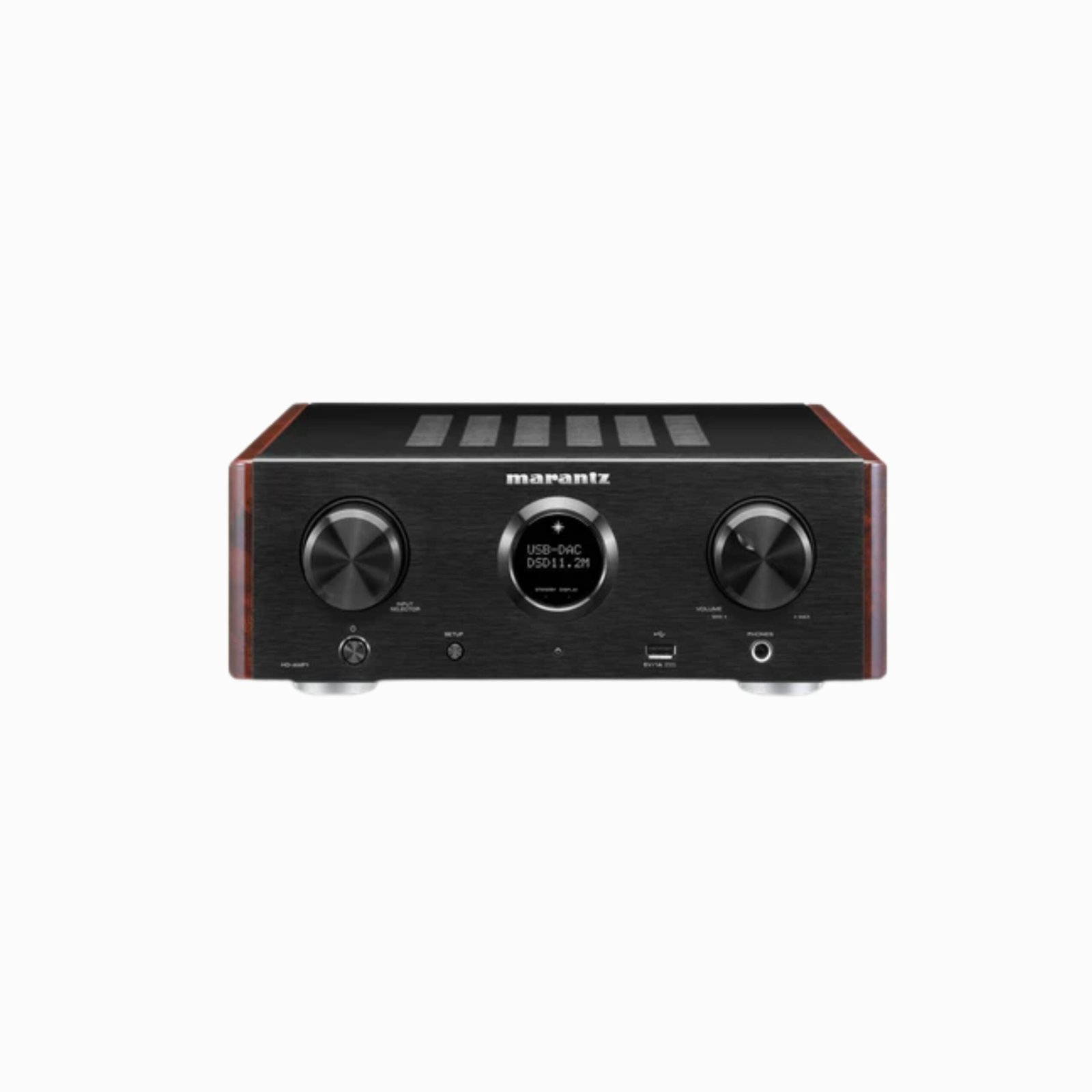 To safeguard quality when connected to a computer, we built extended isolation around the USB-B input to eliminate the chance of high-frequency noise generated by the computer entering the HD-AMP1. Information on volume, input, resolution, and more is shown on the stylish Marantz Porthole Display. The solid aluminium front is supported by a double-layer bottom plate and retro-style side panels. Welcome to the world of compact ecstasy.