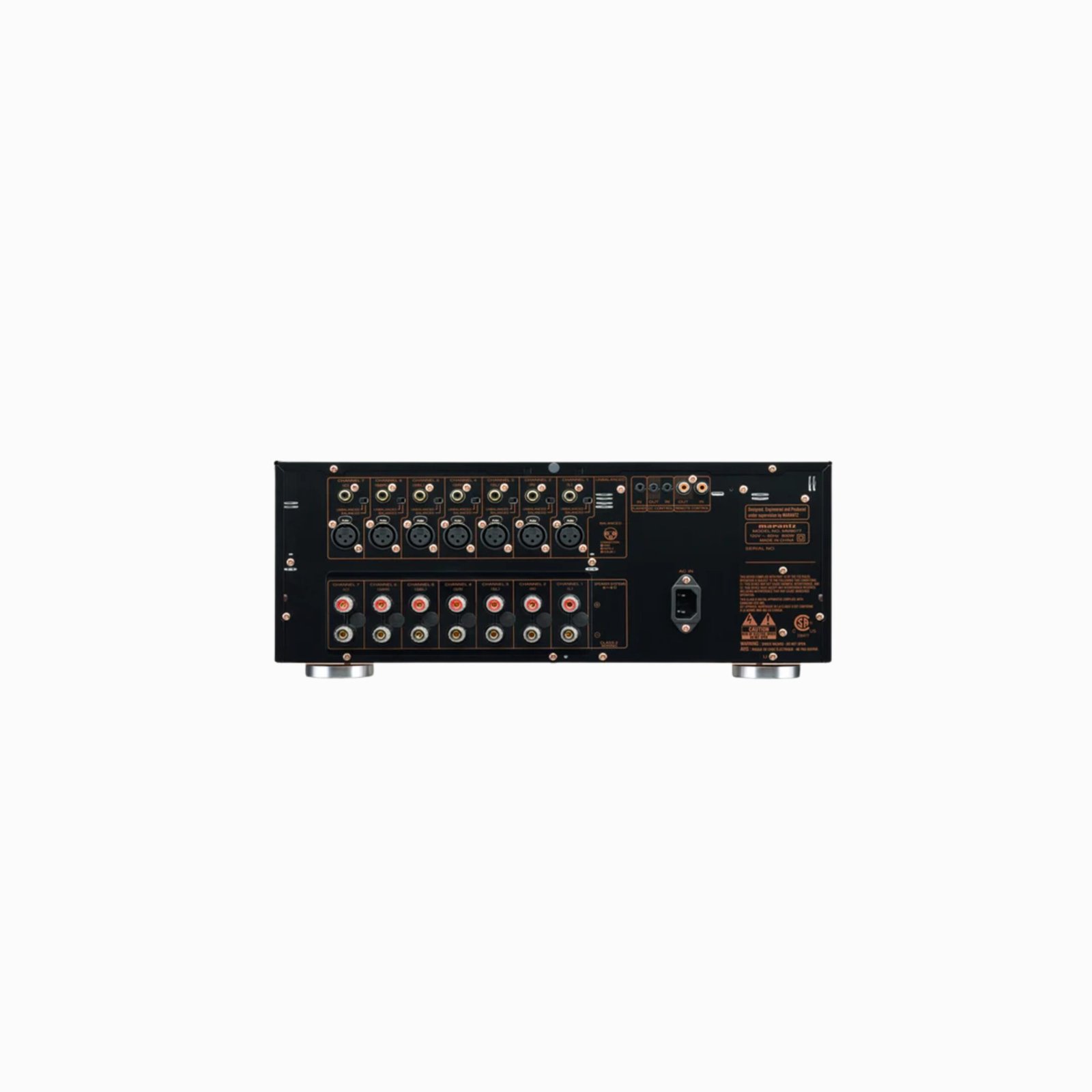 Gold-plated speaker terminals and balanced XLR plus unbalanced RCA inputs for secure connections