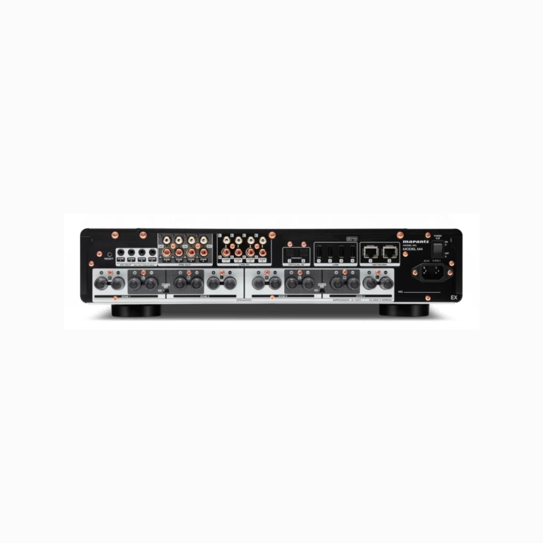MODEL M4 is a four-zone, rack-mountable distribution amplifier engineered to offer superb Marantz sound from a wide range of streamed music services, locally connected music sources, and your TV.