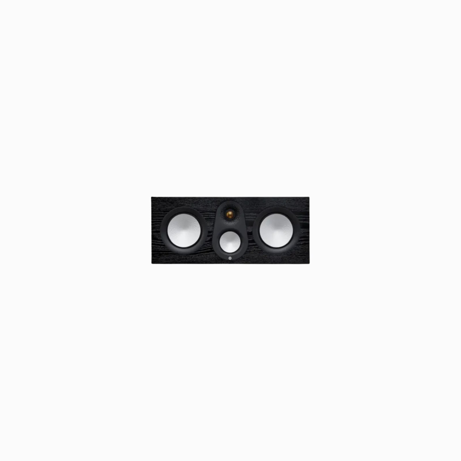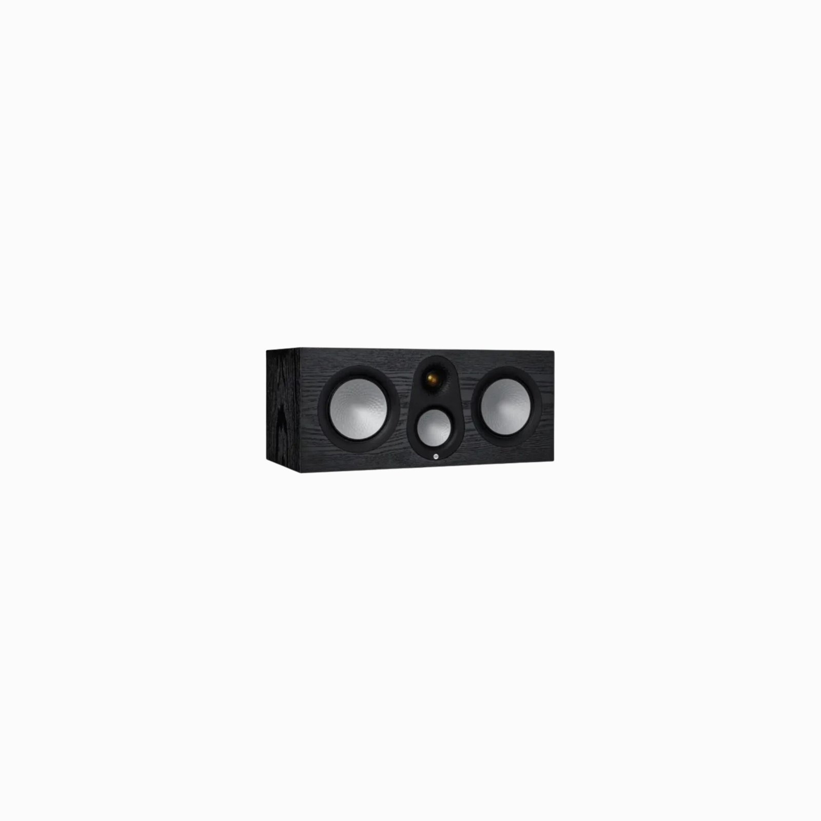3-way centre-channel speaker with dedicated tweeter, midrange, and dual bass drivers.