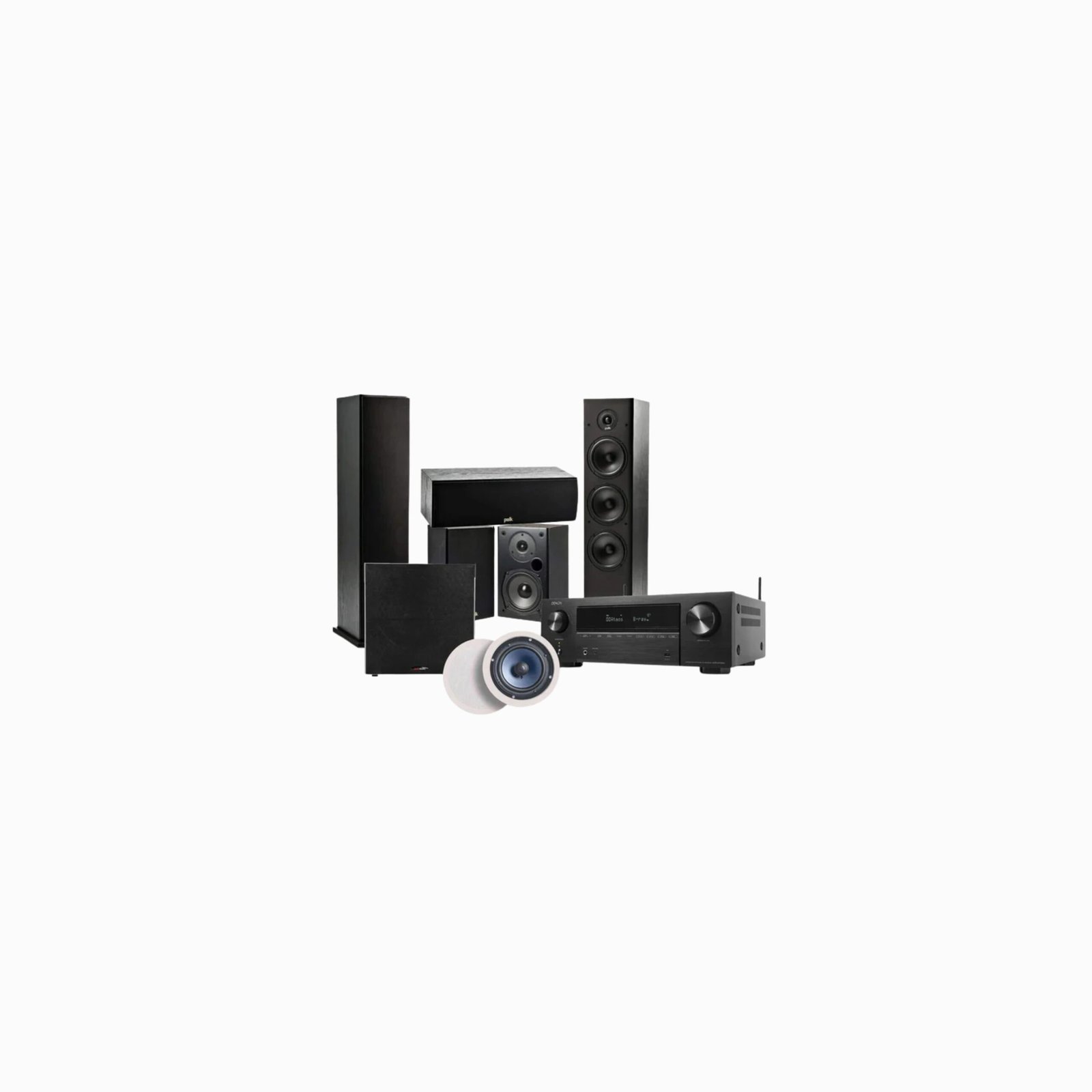 Polk Audio Fusion T- Series T50 Package with Polk Audio RC60i In-Ceiling Speaker + Denon AVR-X1800H 8K AV Receiver (5.1.2 Home Theatre Bundle Package)