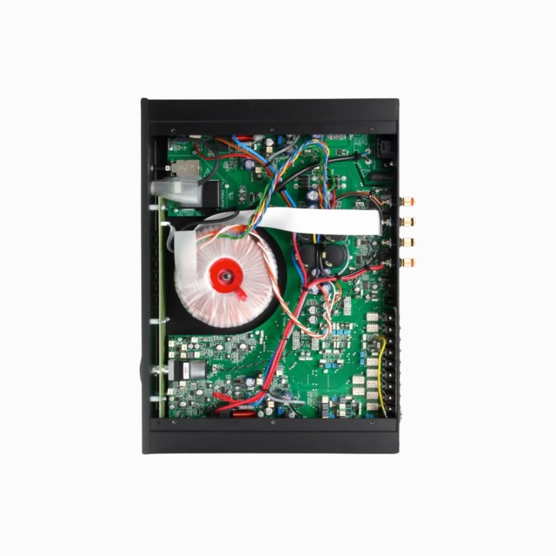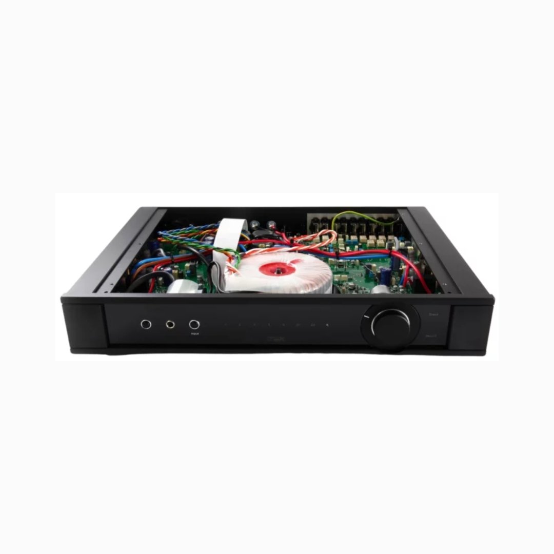 The Rega Elicit MK5 Stereo Integrated Amplifier now shares other design features taken directly from the highly acclaimed Aethos amplifier. You will find the same discrete FET-based pre-amplifier circuit, plus an Alps volume potentiometer, has been introduced to further improve sonic and technical performance. As you would expect, special attention has been paid to the selection of key audio components. Discrete circuitry, high-quality relays, polypropylene capacitors, and Sanken output transistors are used throughout the design.