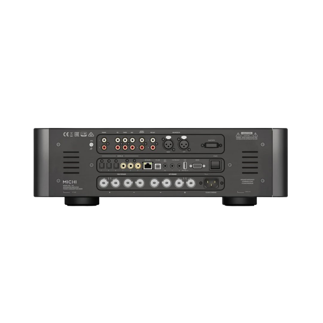 The Michi X3 Integrated Amplifier delivers uncompromised audio performance with a full array of source inputs, including Analog, Digital, PC-USB, XLR, apt-X Bluetooth, and a Moving Magnet Phono Stage connection for classic vinyl lovers. The X3 is conveniently packaged in an elegant industrial design delivering 350 Watts of Class AB power into 4 ohm speakers while maintaining musical accuracy with exceptional acoustic detail.