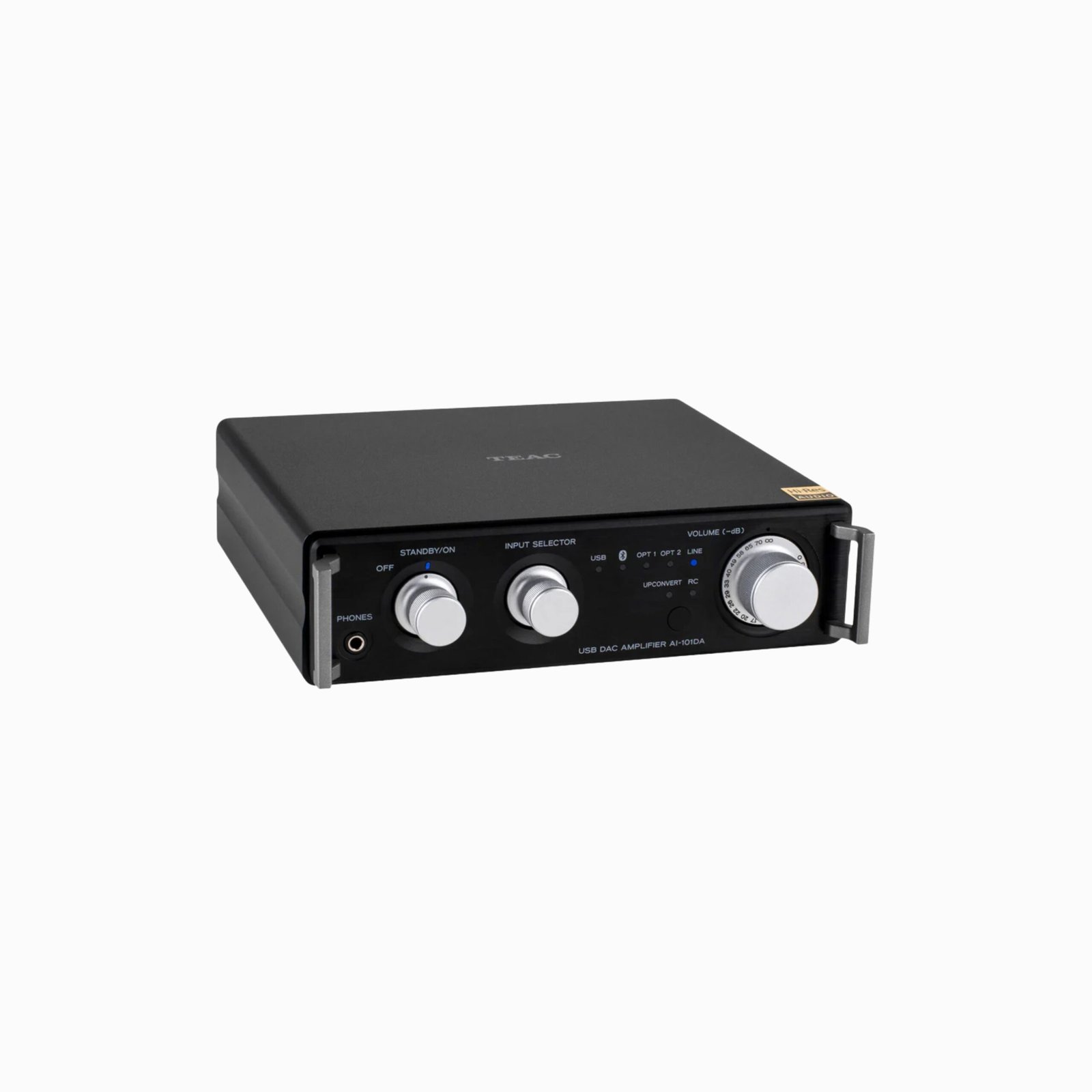 The AI-101DA’s bible-sized body made of aluminum enables a convertible layout, horizontal or vertical, while TEAC’s iconic side guard bars give a professional finish. As users’ demands for high-quality headphone listening increase, TEAC have responded by including 100mW + 100mW of headphone output in the AI-101DA main unit to enable it to drive a wider range of headphones, including high impedance models.