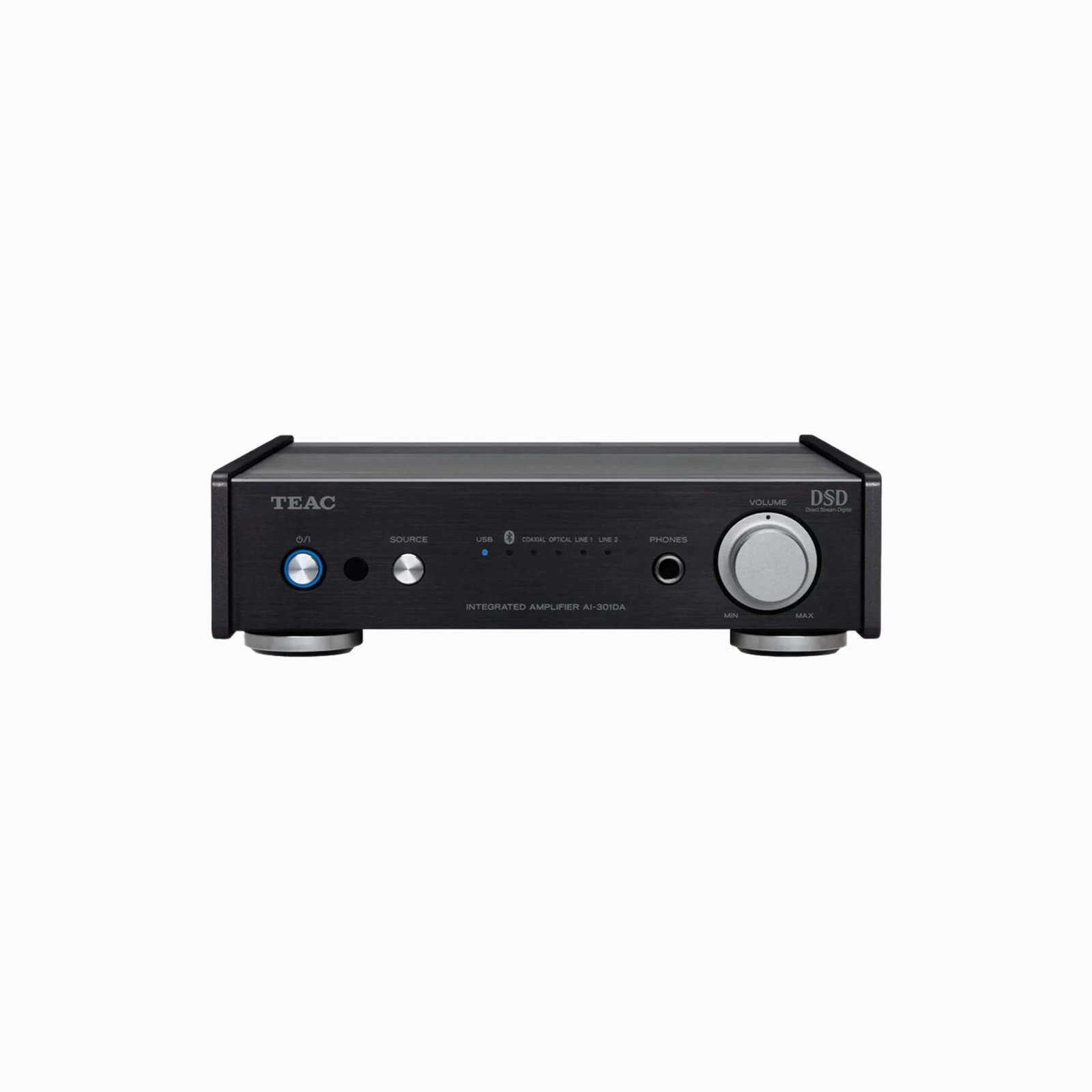 Integrated stereo amplifier with built-in high-performance DAC for digital and analog source playback