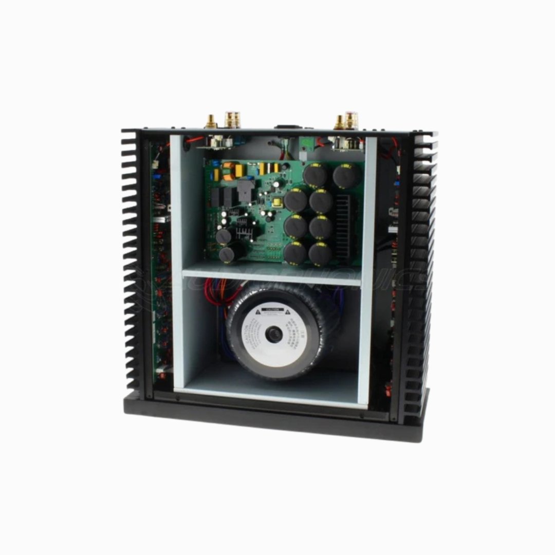 In order to develop such a power, the AD-2500PRO embeds within a differential circuit no less than 8 pairs of high-performance transistors, Onsemi NJW0281G and NJW0302G. These are integrated on independent mono amplifier modules, each dedicated to one channel, thus effectively limiting interference for pure sound reproduction. These modules are also installed on the large side-mounted heat sinks, effectively removing the heat generated by the power components.