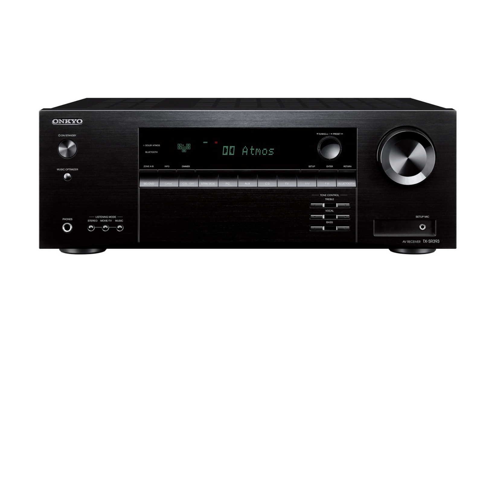 Front-panel display provides clear system and playback information