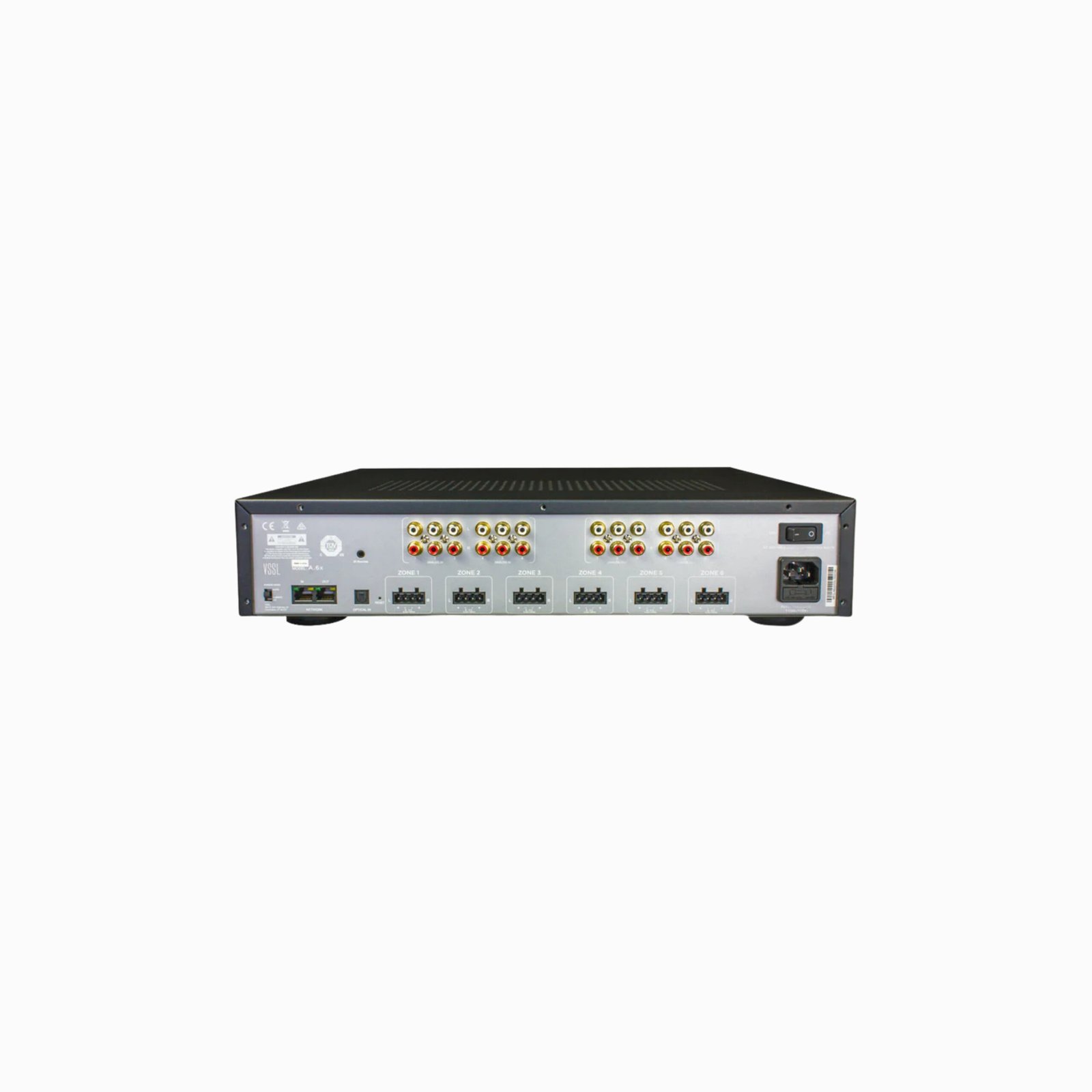 6-Zone Multi-Room Amplifier capable of powering six independent audio zones simultaneously